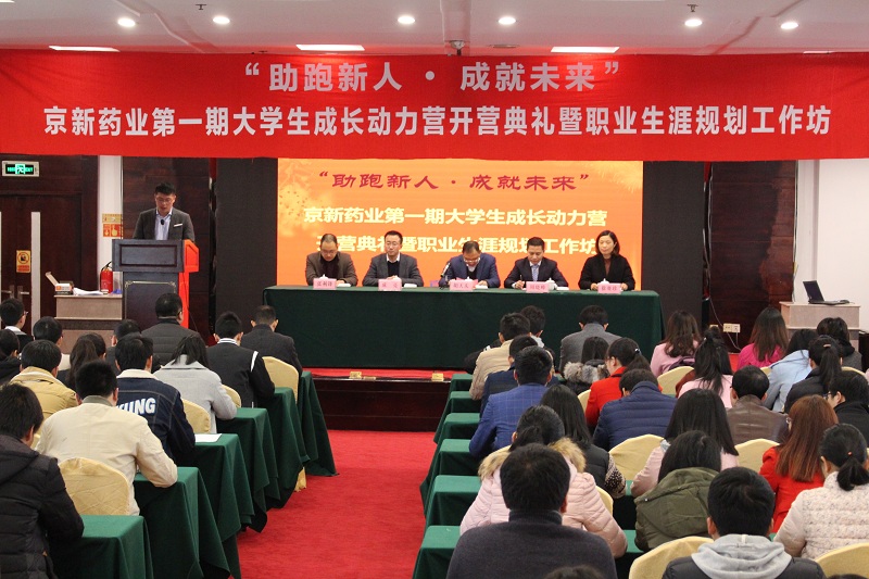 3月18日,公司第一期“助跑新人 成就未來(lái)”大學(xué)生成長(zhǎng)動(dòng)力營(yíng)在新昌鶴群酒店舉行開(kāi)營(yíng)典禮,公司副總經(jīng)理胡天慶、人力資源總監(jiān)周曉峰、研究院副院長(zhǎng)成亮、上虞京新副總經(jīng)理徐賽珍、藥品制造公司副總經(jīng)理張利鋒及公司15、16屆全體大學(xué)生參加了本次典禮。